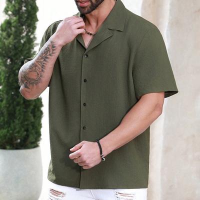 Pánská košile s kubánským límcem s krátkým rukávem na knoflíky jednobarevná volného střihu ležérní letní plážová košile pro každodenní nošení dovolenou práci