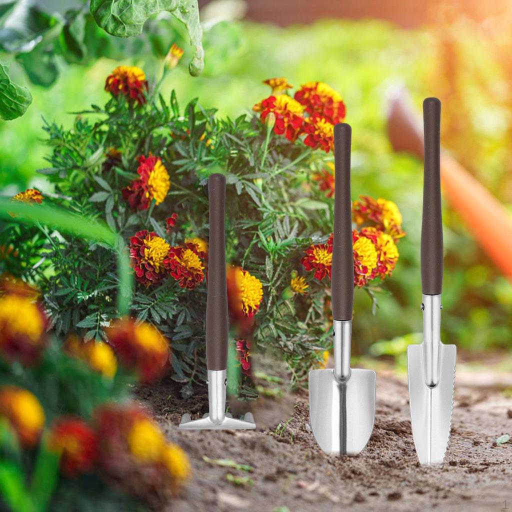 - 【Compact Size】: The set includes a round head trowel (21.3 x 4.3 cm), a pointed head trowel (24.3 x 3.1 cm), and a rake (16.3 x 5 cm). These compact sizes make them easy to handle and store