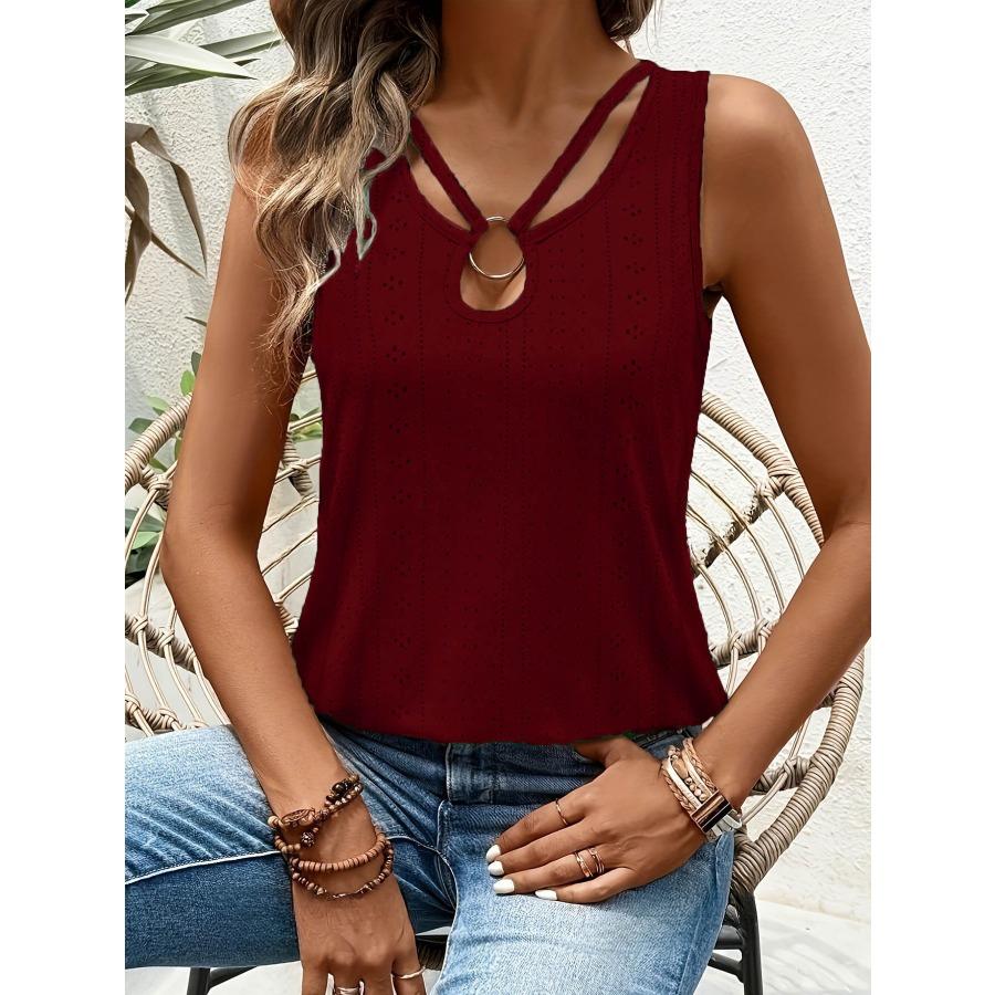 Spring and Summer Casual Solid Color V-neck Top with Hollowed Out Camisole Vest Women's T-shirts