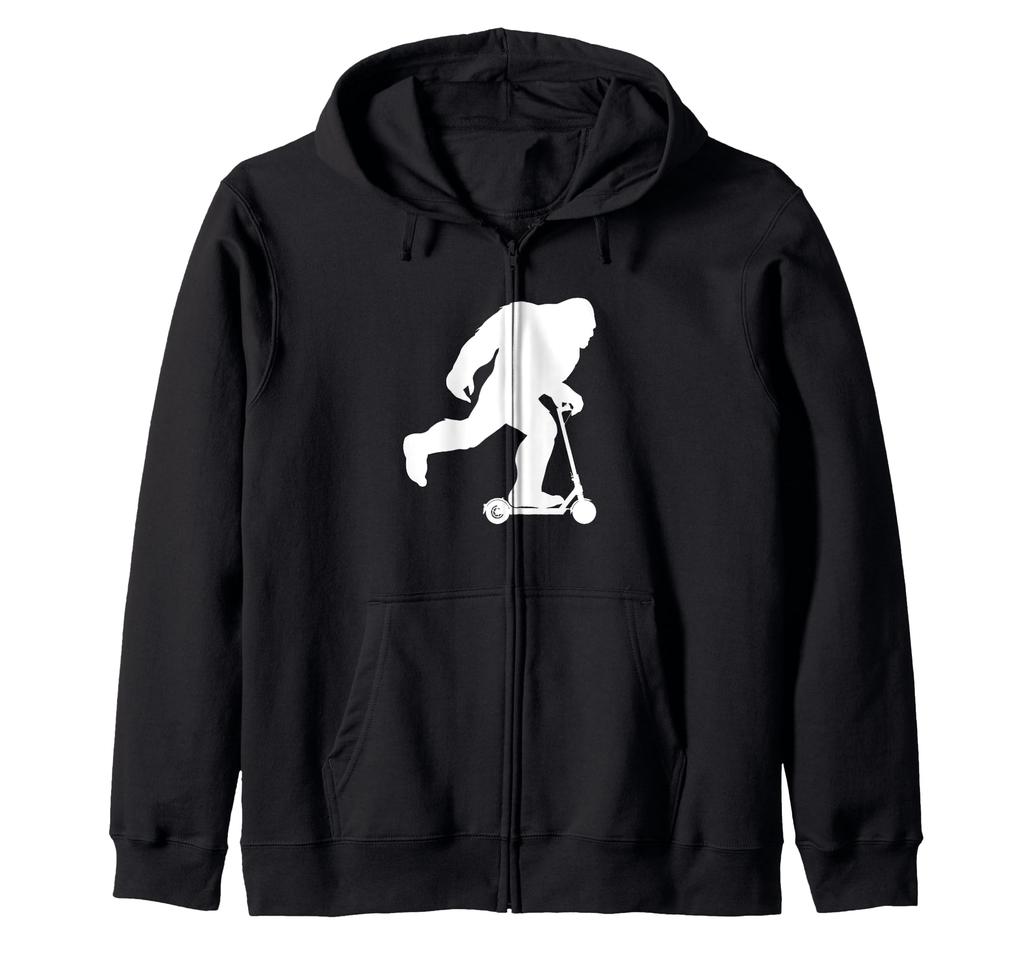 funny Scooter tee featuring Bigfoot on a scooter riding away scootering. A funny tee for a skater who believes in bigfoot. A funny tee for a big foot believing scooter who loves to ride at the skate park or loves to perform tricks on their scooter.