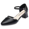 Spring Autumn New Style Fashion Soft Leather Point Head Square Heel Women's Shoes Shallow Mouth Buckle Rhinestone Shoes