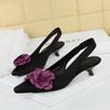 French High-End Flower Pointed Toe Mid-Heel Single Shoes For Women's Silk And Satin Back Tripping Women's Shoes Without Tiring