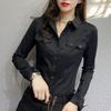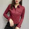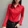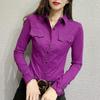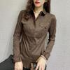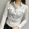 Office Lady Slim Solid Color Blouse Fashion Pockets Spliced Spring Autumn Chic Single-breasted Women's Clothing Polo-Neck Shirt