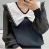 Female Clothing Bow Sailor Collar Shirt Commute Solid Color Spring Autumn Long Sleeve Stylish Folds Spliced Casual Loose Blouse