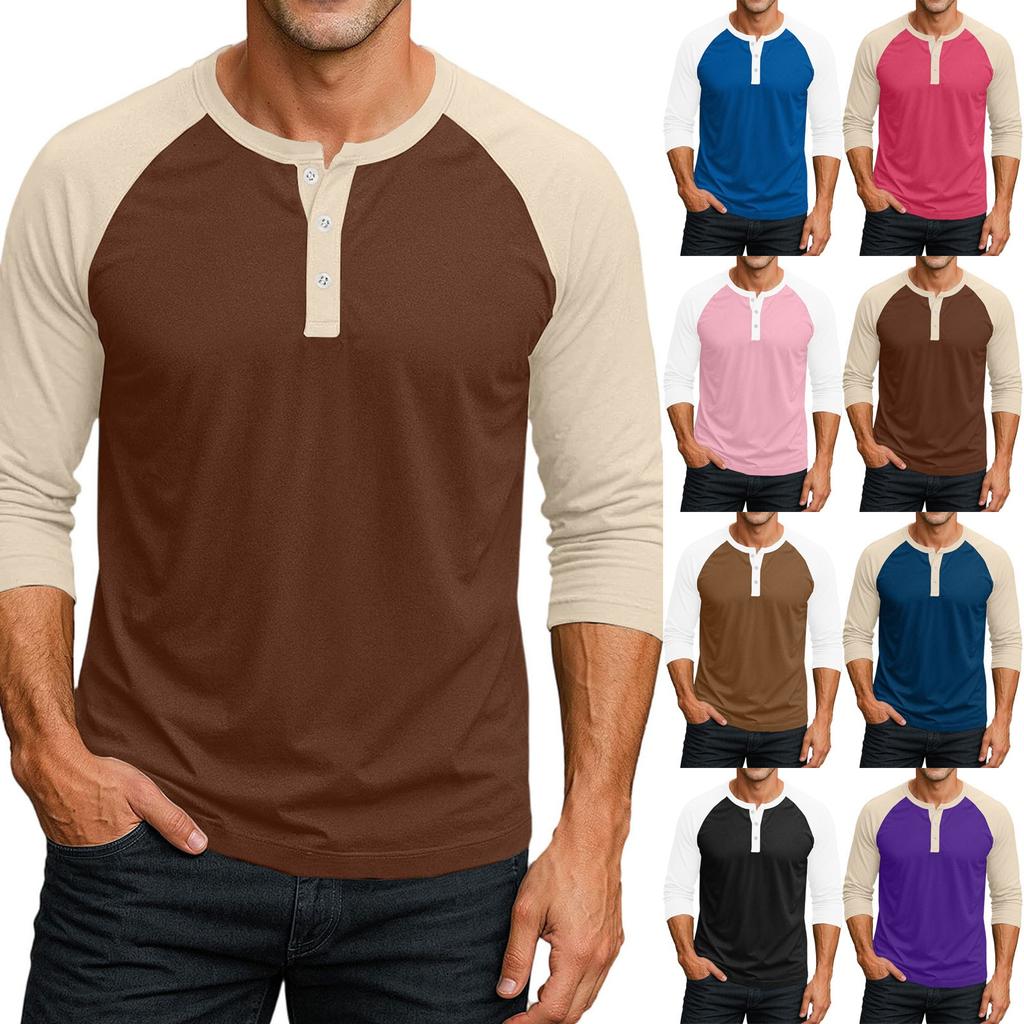 Pánské propínací tričko s kontrastním raglánovým 3/4 rukávem