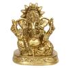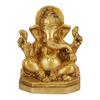 Kovová ručně vyráběná zlatá soška Pána Ganéši na trůnu s designem páva - Dekorativní náboženská soška boha pro domov