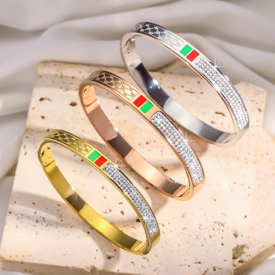 Htpwe Stainless Steel Red And Green Oil-dripping Zirconium Bracelet Women Plated 18k Couple Holiday Gift Bracelet Party Zircon