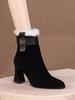 Pointed thick heel short boots women's winter matte short tube thickened high heel Martin boots warm hairy boots women's boots