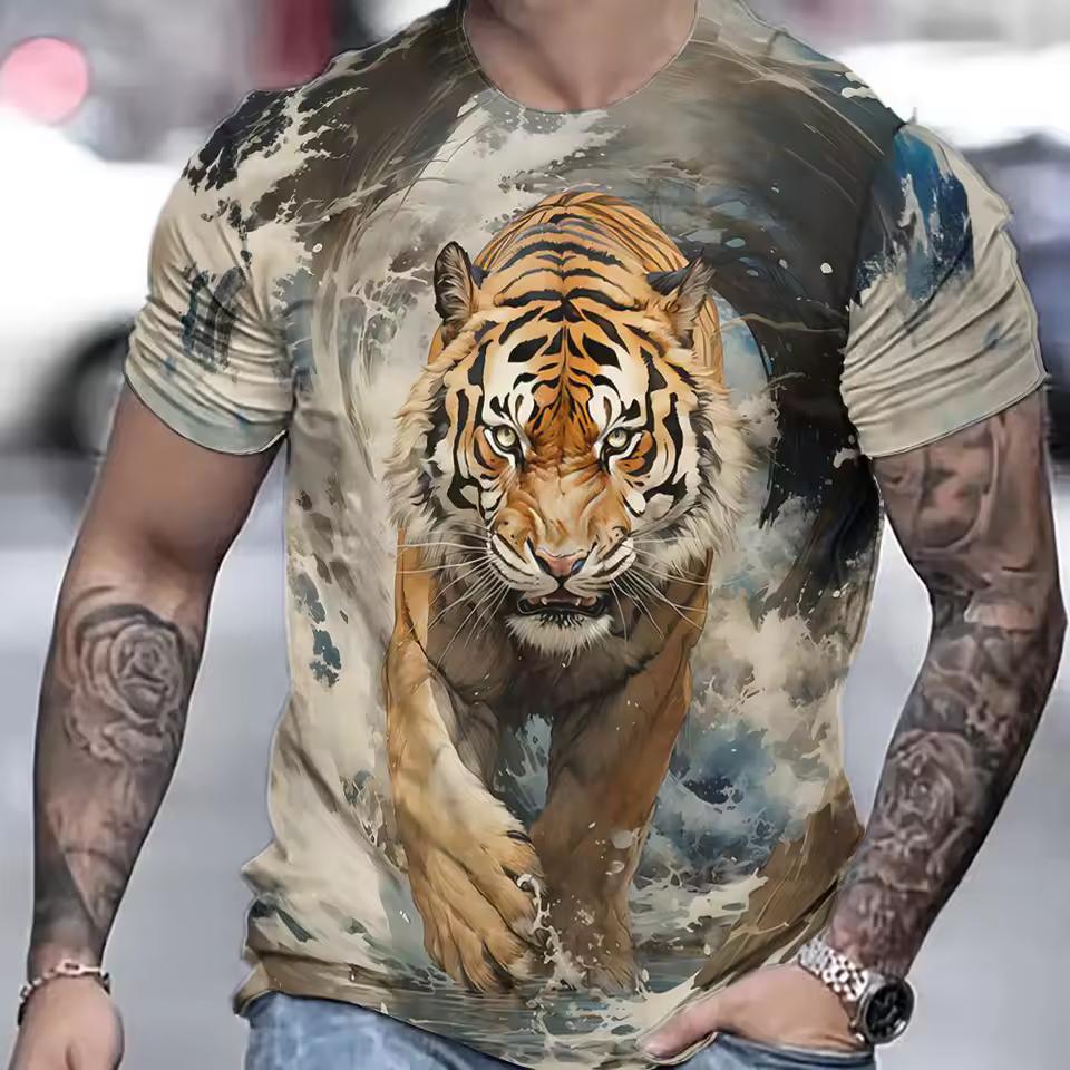 Tygří tričko pro muže 3D Animal 3D tisk Pánské košile Léto Tričko s krátkým rukávem Pánský svetr Oversized Top Běžné Pánské oblečení