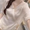 2025 summer medium-sleeved embroidered top feminine temperament versatile high-end lace-up shirt women