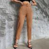 Dámské jednobarevné ležérní kalhoty s mikroelastickým úzkým střihem a zdobeným páskem, rovné nohavice, devítibodové kalhoty