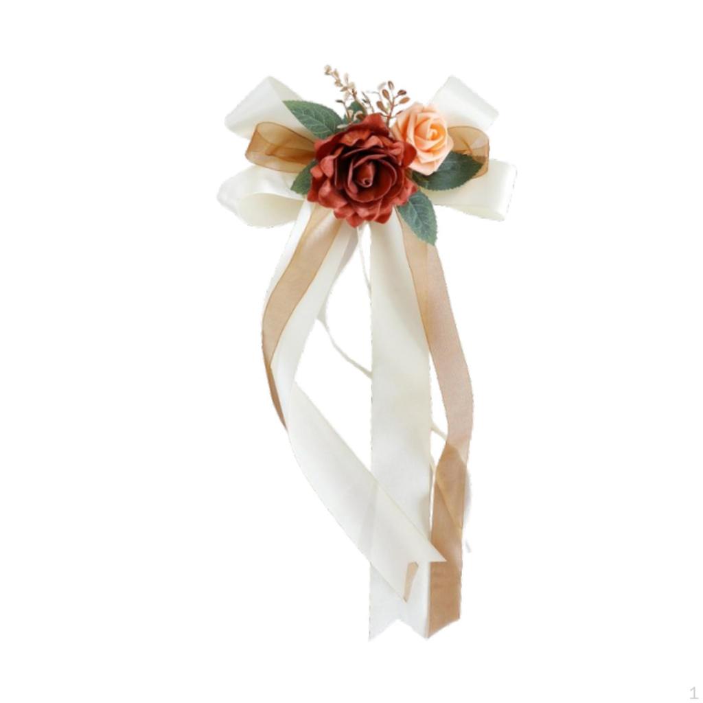 - 【Materiál】: Svatební květina na opěradlo židle, krásné a realisticky vypadající umělé hedvábné růže, měkké ručně vyráběné stuhy