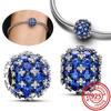Hodí se na náramek Pandora 925 Sterlingová měď Třpytivé červené černé modré zirkonové kulaté korálky Bílé červené zelené muránské sklo Přívěsky Zirkon