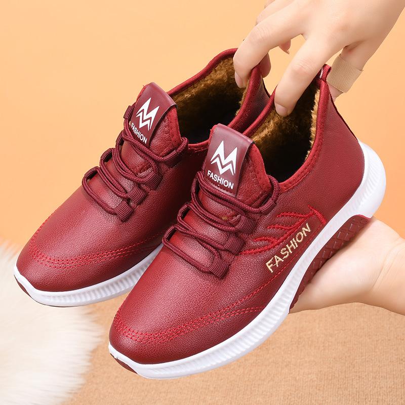 Leather waterproof sports casual cotton shoes women's autumn and winter piled thickened mother two cotton shoes new cotton boots women