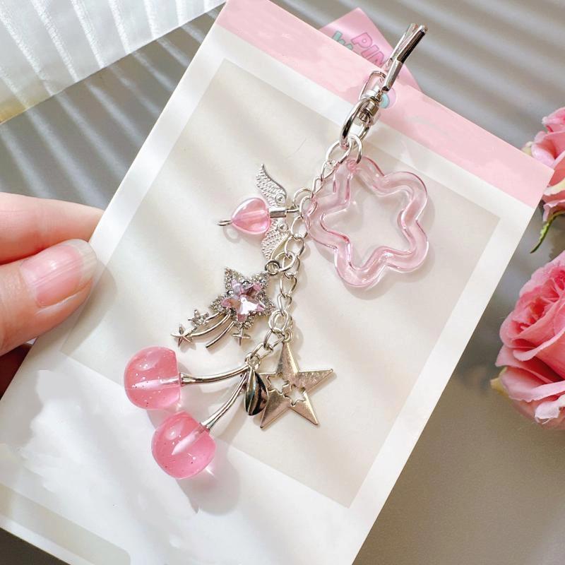 Klíčenka s meteorovou třešní zdobená diamanty, korálková klíčenka, přívěsek na batoh, ozdoba, řetízek na telefon, doplňky