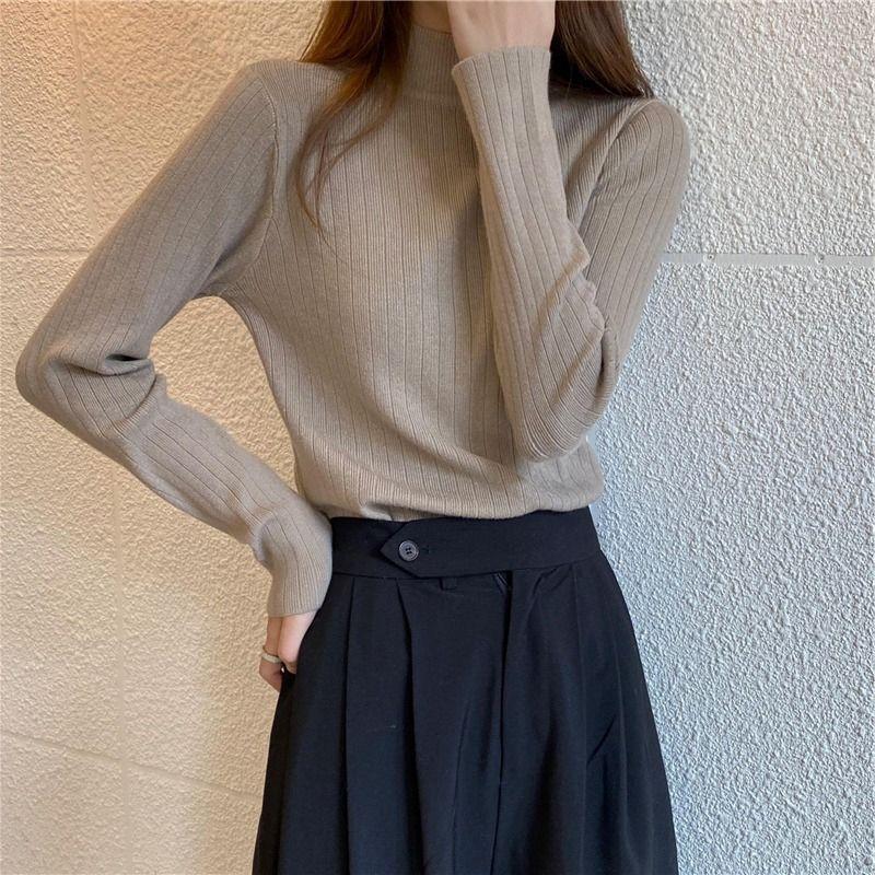 Elegant Turtleneck Knit Base Layer Autumn Winter Sweater Women's Simple Slim Fit Inner Mid-neck Top