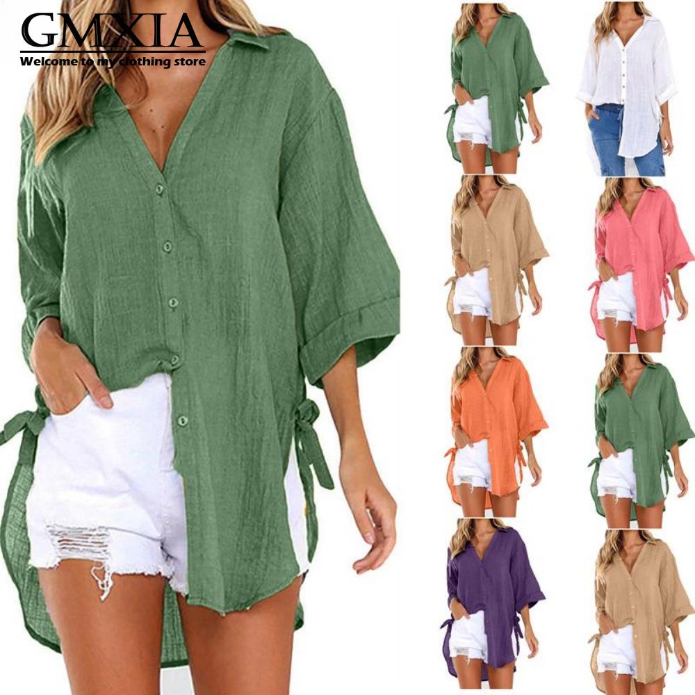 GMXIA Dámská móda Ležérní Volnočasové Jednobarevné S potiskem Dlouhý rukáv POLO Límec Halenky a Košile