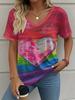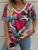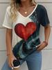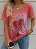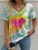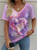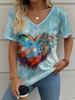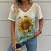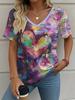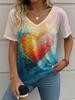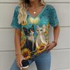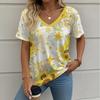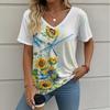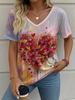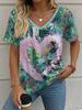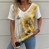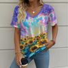 Letní gradientní 3D umělecký květinový potisk grafická halenka dámská s V-výstřihem módní retro oblečení volné oversized tričko