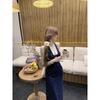 Summer lace splicing hanging neck beautiful dress women's navy blue huge good-looking hip-wrapped fishtail dress
