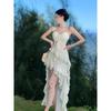 Gentle wind sweet irregular dress women's summer design pleated waist a word suspender dress