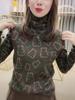 Turtleneck bottoming shirt women's velvet thickened autumn and winter foreign style warm long-sleeved bear t-shirt women's top