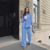 Letní dvoudílný outfit pro ženy Nadměrná košile s dlouhým rukávem na knoflíky a sada zkrácených kalhot Ležérní domácí souprava tepláková souprava
