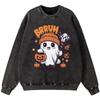 Halloweenský duch Brruh Dámská vintage bavlněná mikina s praným vzhledem Módní pulovr s kulatým výstřihem Podzimní tenký styl Volné topy