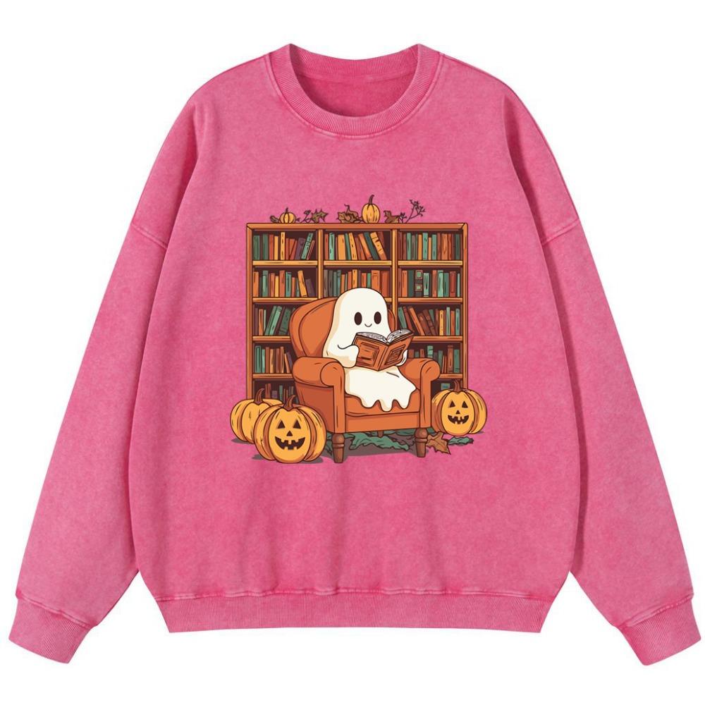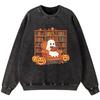 Halloweenský duch čtoucí dívka Vintage praná bavlna Tenký styl Mikina Street Crewneck Měkký pulovr Podzim Nadměrná velikost
