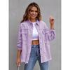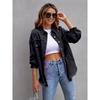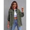 Podzim Zima Dámská Nová Džínová Bunda Módní Broušený Okraj Děravá Dutá Dlouhý Rukáv Jednořadé Zapínání Ležérní Límec Top