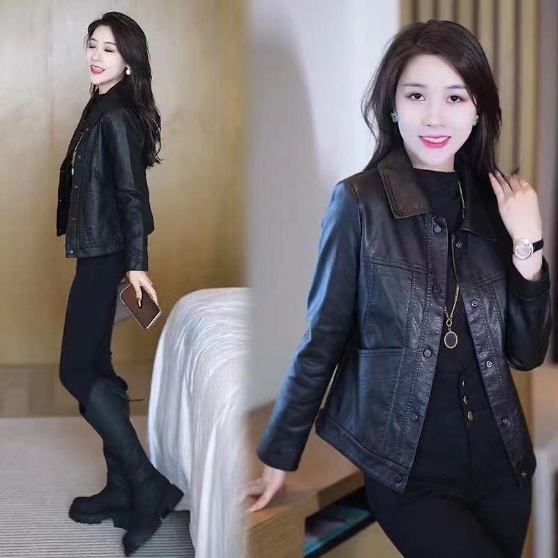 Jarní Podzimní Černá Módní Kožená Bunda pro Ženy Krátký Kabát Plus Size