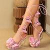 Fashion Butterfly-knot Ankle Lace-up Women Sandals Design Plexiglass Crystal Wedge High Heels Party Shoes