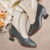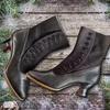 Dámské kotníkové boty SLIP-ON smíšených barev s lodičkovým nepravidelným podpatkem, kulatou perlovou přezkou, streetový trend, podzimní kotníkové boty