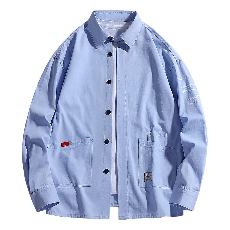 New Spring and Summer Men's Work Jacket Versatile Casual Hong Kong Style Loose Long-sleeved Shirt Jacket