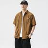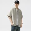 Summer Jacquard Plaid Work Shirt Style Men's Lapel Loose Casual Short-sleeved Shirt Men