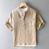 Summer Cotton and Linen Shirt Japanese Retro Men's Short-sleeved Shirt American Trendy Mid-sleeved Shirt
