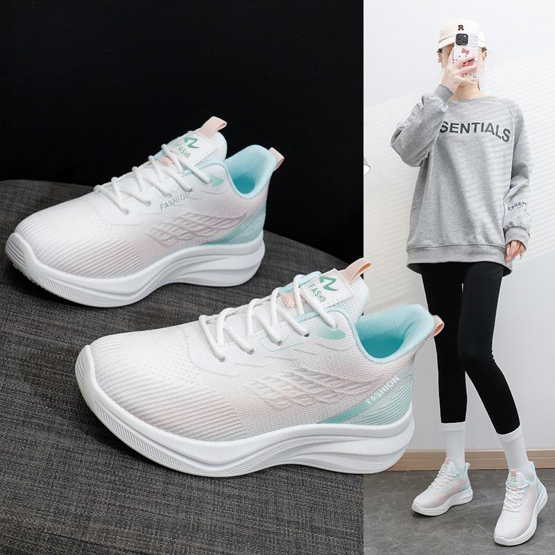 Spring new breathable fly-woven women's shoes is trendy student running sports shoes casual shoes