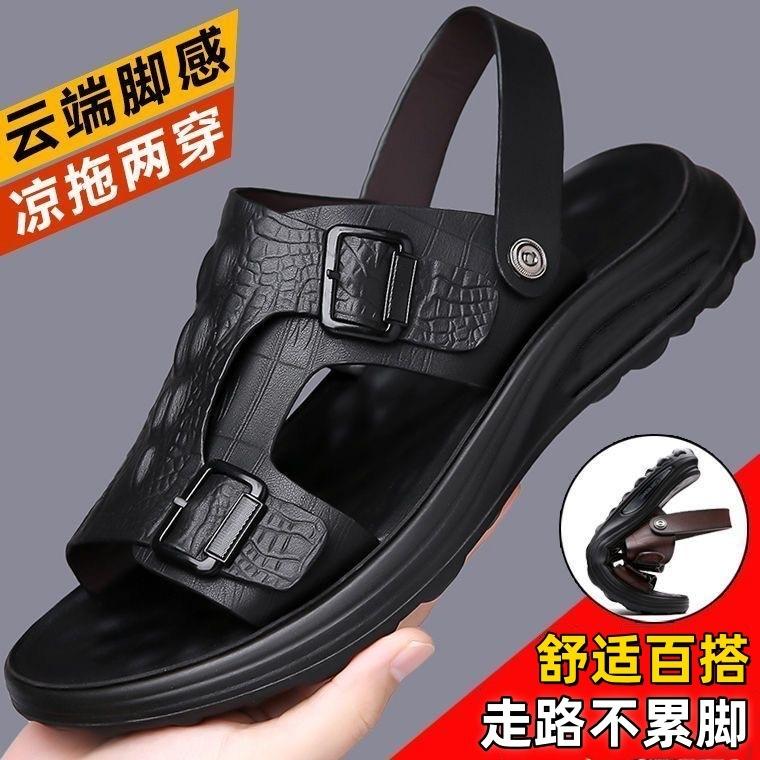 Men's sandals summer trend casual shoes breathable outdoor beach shoes soft sole two wear cool slippers flat bottom