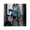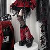 Vyšívaný černý a červený pruhovaný punkový top s odhalenými rameny - Dlouhý rukáv