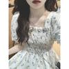 Square collar floral dress women's summer new small Mori super fairy small fresh and thin medium and long skirt