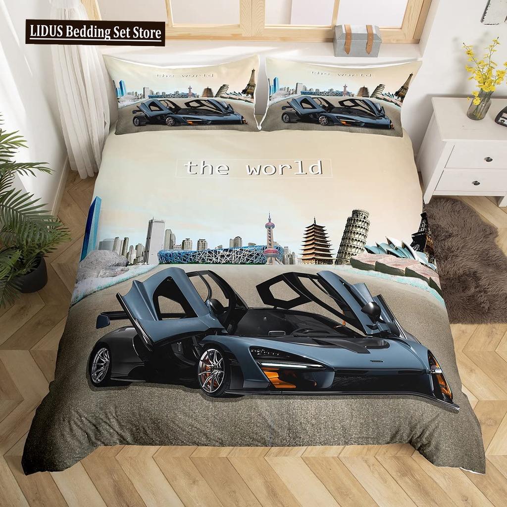 Závodní auto Povlečení Set Velikost Queen 3D Potisk Auta Povlečení Stylová Dekorace Kluci Sport Přikrývka Povlak Rychlost Sportovní Auto Přikrývka Set