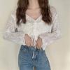 Summer V-neck hollow new slim-fitting and thin drawstring short outer knitted sweater women's thin solid color top