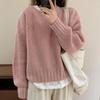 Japan and South Korea solid color lazy simple sweater women's autumn and winter new thick pullover crew neck knitted sweater