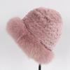 Women Luxury Winter Hat Real Rex Rabbit Fur Bomber Hats Lady Winter Genuine Fox Fur Cap Beanies Warm Soft Fluffy Natural Fur Hat