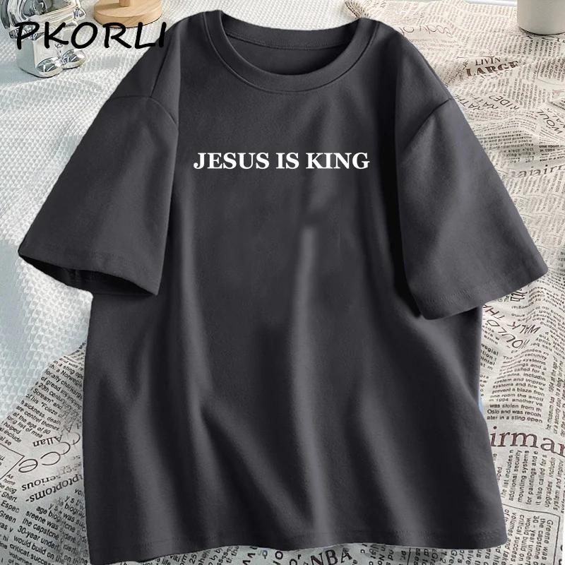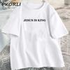 Tričko Jesus Is King Ženy Ležérní Tričko Bůh je dobrý Dámské Křesťanské oblečení Víra Tričko Tričko Bavlna Trička s krátkým rukávem