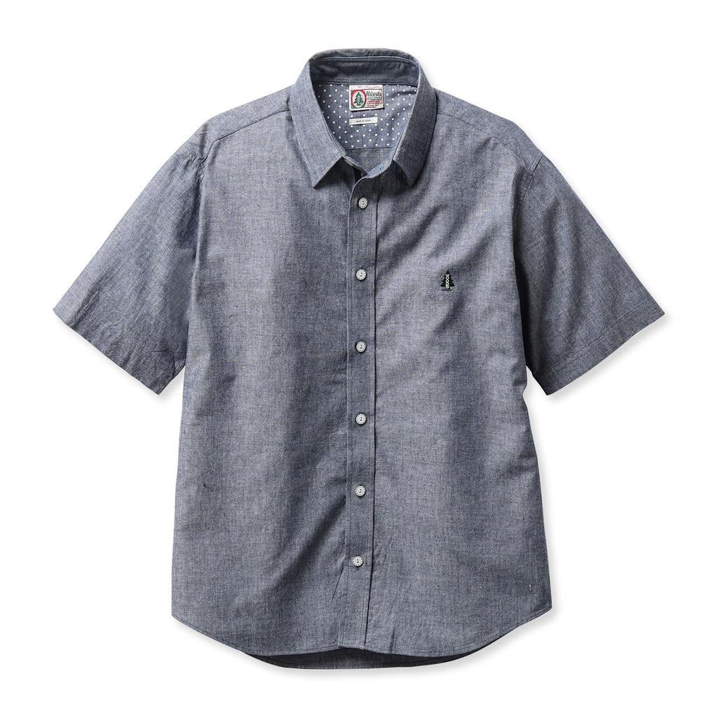 dungaree shirt for men [WOODS] Japanese-made short-sleeved (M, navy)