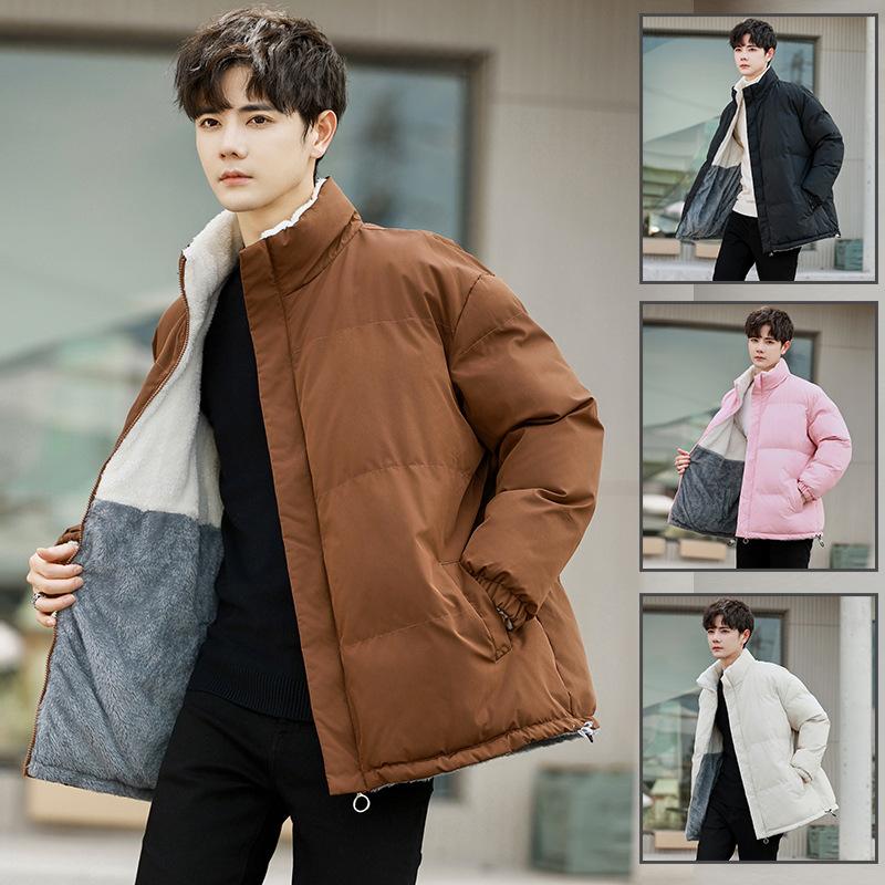 2025 autumn and winter new stand-up collar cotton-padded clothes bag clothes urban trendy brand couple models double wear velvet cotton-padded jackets
