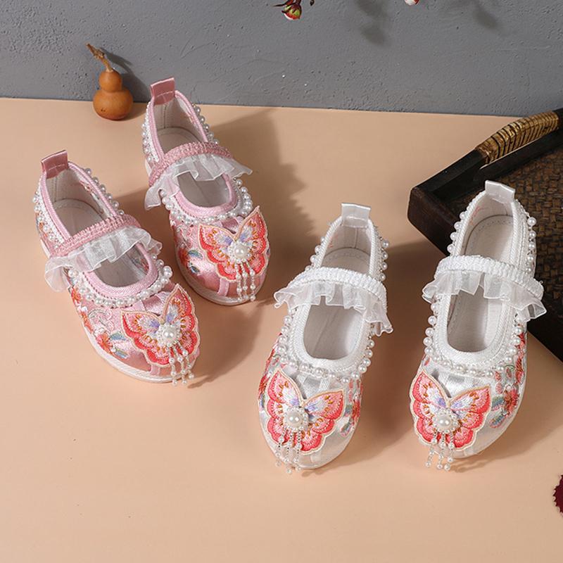 Girls Flat Bottomed Embroidered Sandals Comfort Girls Shoes Children's Embroidered Cloth Princess Shoes