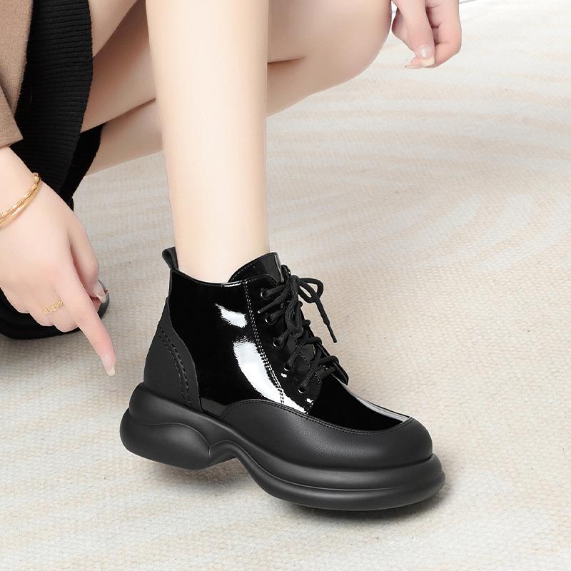 Velvet Thickened Platform Boots Gothic Autumn Winter Thick Heel Soles Boots New Women Ankle Soft Patent Leather Boots