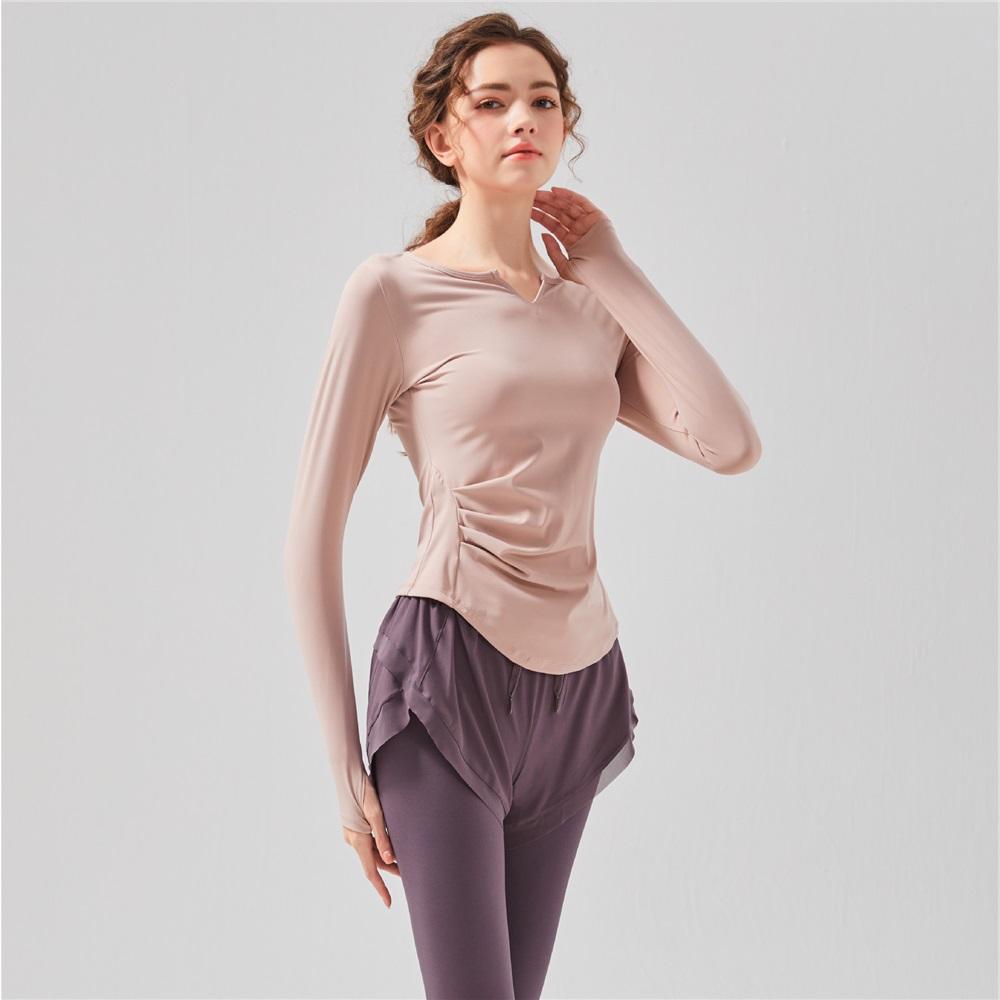 New Style Sports Suit, Casual Running Fitness Sports Tight Pants, Nude Quick-dry Fake Two-piece Long-sleeved Suit For Women