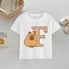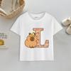 Tričko kapybara Potisk písmen A-Z Top Roztomilý Kreslený Anime Chlapecké Dívčí Oblečení Bavlna Kulatý Výstřih Kojenecké Krátký Rukáv Venkovní Oblečení